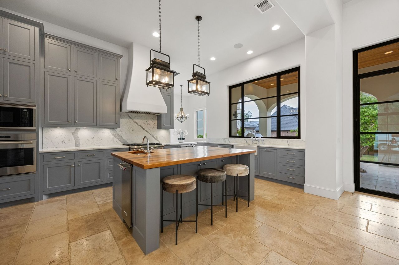At the center of the home, the kitchen is a showcase of craftsmanship—featuring hardwood cabinetry, an apron-front sink, Wolf and Sub-Zero appliances, and a walk-in pantry and utility room designed with everyday functionality in mind.